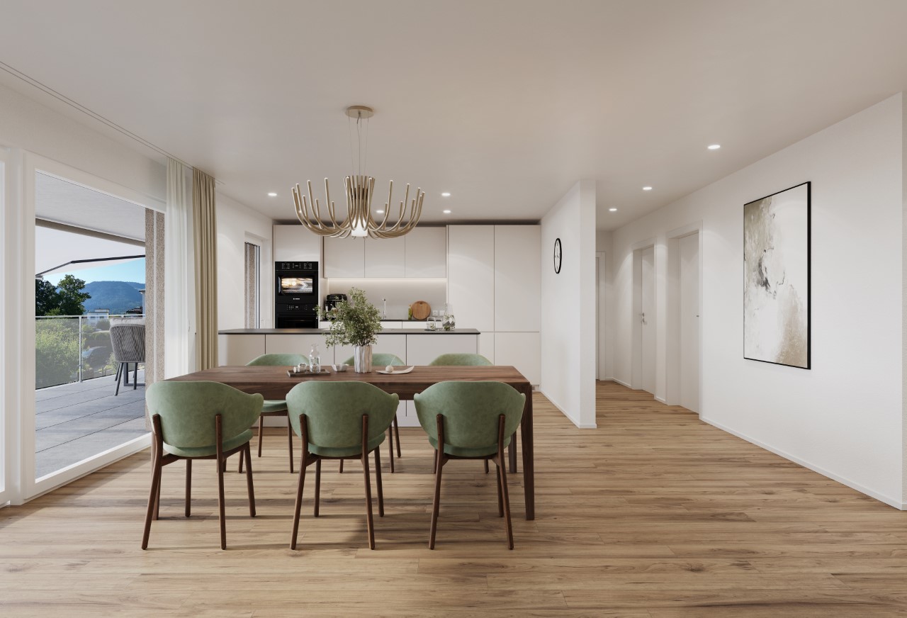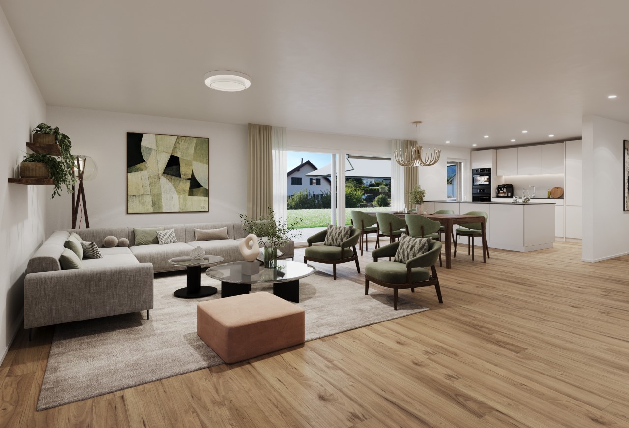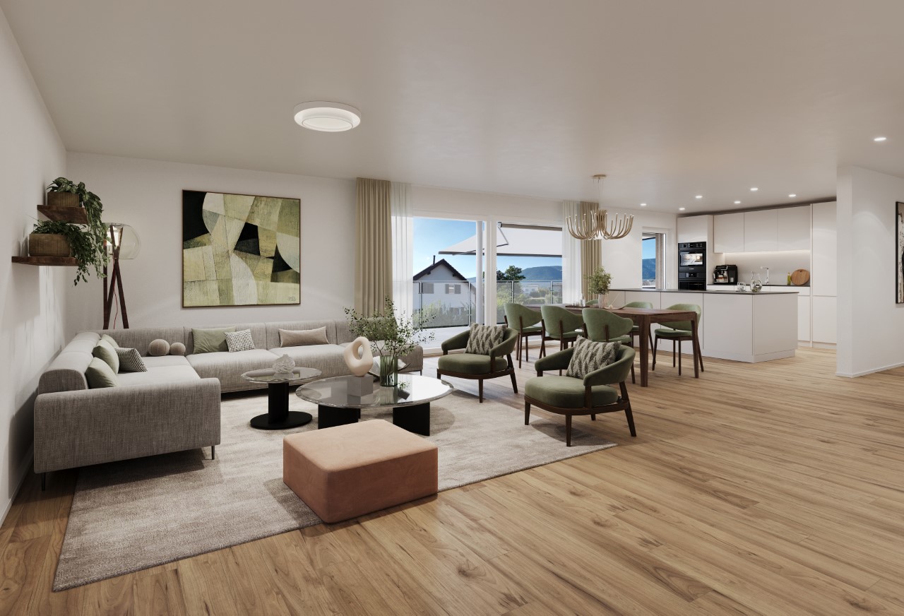 Die Wohnungen überzeugen durch helle, offene Grundrisse, eine moderne Raumaufteilung sowie eine hochwertige Innenausstattung. Jede Einheit verfügt über einen grossen Wohn-/ Ess-/ Kochbereich, mehrere Schlafzimmer sowie sonnige Sitzplätze oder Balkone mit Aussenreduit.